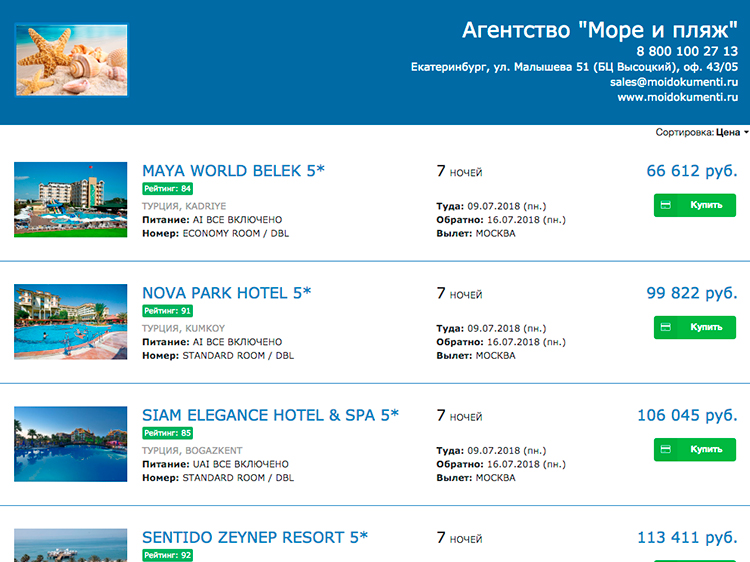 Фотографии отелей автоматически подтягиваются при добавлении тура в подборку.